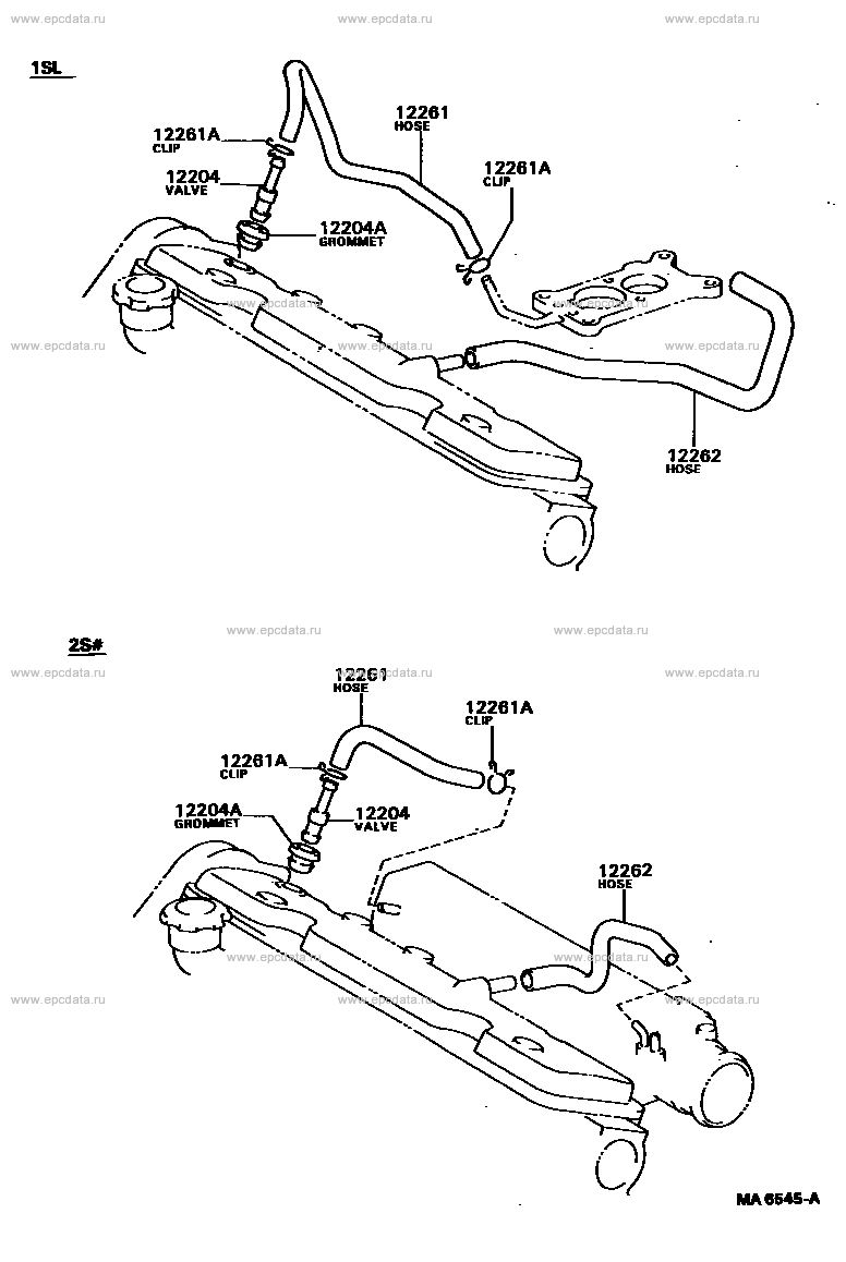 Click part number in the scheme or in the list: 12261 HOSE, VENTILATION12261A CLIP OR CLAMP (FOR VENTILATION HOSE) 12204 VALVE SUB-ASSY, VENTILATION 12204A GROMMET (FOR VENTILATION SYSTEM) 12262 HOSE, VENTILATION, NO.2 |