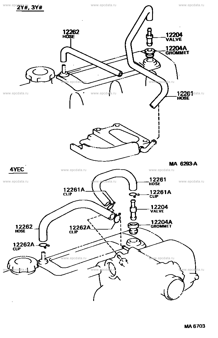 Click part number in the scheme or in the list: 12262 HOSE, VENTILATION, NO.212204 VALVE SUB-ASSY, VENTILATION 12204A GROMMET (FOR VENTILATION SYSTEM) 12261 HOSE, VENTILATION 12261A CLIP OR CLAMP (FOR VENTILATION HOSE) 12262A CLIP (FOR VENTILATION HOSE NO.2) |